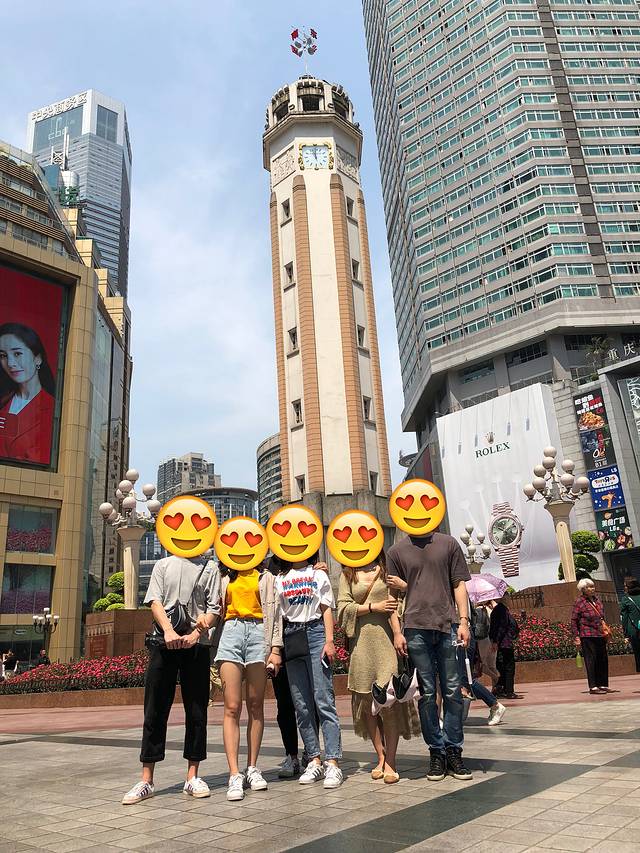 看到解放碑后,大家都表示很失望,哈哈哈哈哈哈,现在解放碑夹在一堆商圈里面,确实不怎么起眼。然后拍游客照