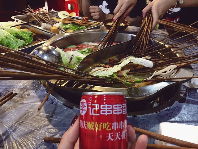 都是串串,吃完按串串的重量算钱,真的很便宜,也可能我们吃的少,人均才三十。怪不得重庆人可以一个人吃火锅。