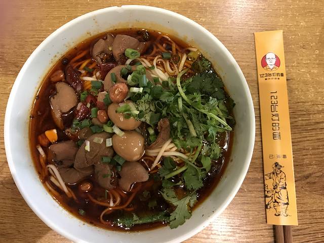 楼下有一家123台灯的面,看起来很不错