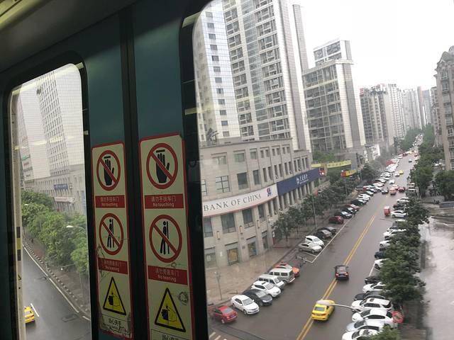 经过了穿楼的李子坝,路上轻轨的风景,第四天太阳出来了天气非常的好