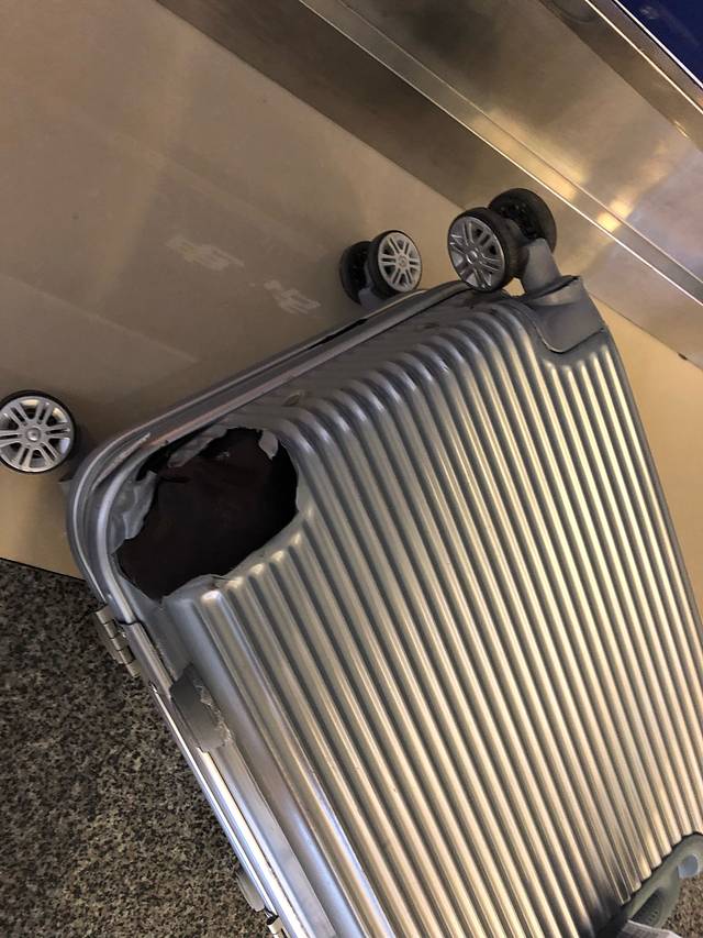 最惨的是……我到南宁以后发现托运的皮箱被摔了一个大洞……第一次遇到可以说是非常痛心了,不过南航处理得很快直接陪我了一个新的20寸皮箱,还好没伤到内里东西没有掉出来。