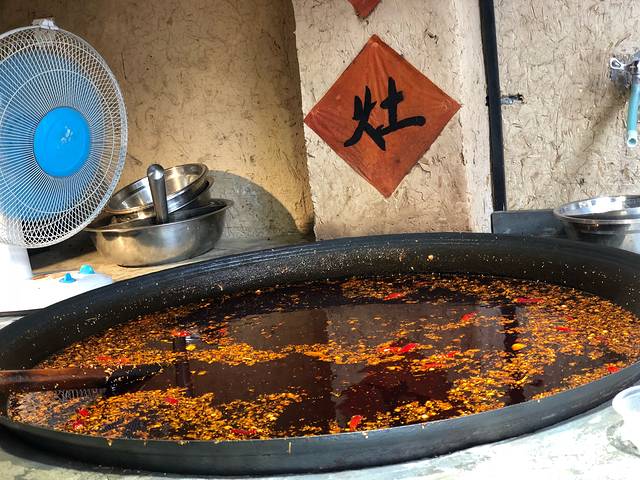磁器口每家店都有一口熬火锅底料的老灶锅,看起来非常的麻辣了~老火锅底料😉