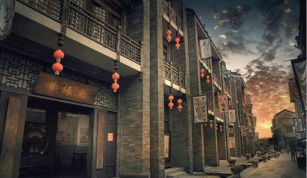 岭南印象园是典型的岭南传统风格建筑群落。民居依水而建,或窄门高屋,或镬耳高墙。悠长的青云巷、古朴的趟栊门、精致的满洲窗,小溪蜿蜒,池塘清澈,处处散发着岭南水乡的韵味。