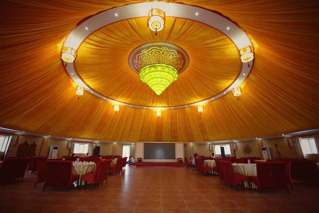金顶大帐,同时可容纳300余人开会