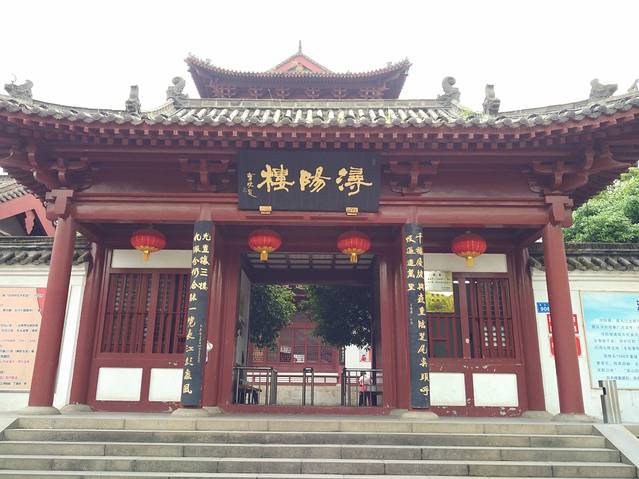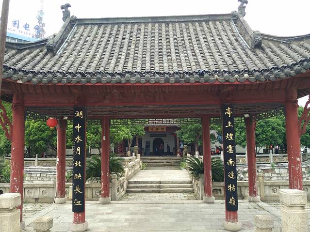岳阳楼的大门口。岳阳古称巴陵郡,阅军楼在两晋、南北朝时被叫做巴陵城楼,到唐朝方改称岳阳楼。
