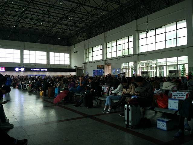 我们一下车,对面刚停下一趟车,是深圳到武昌的,人很多!让他们先走!