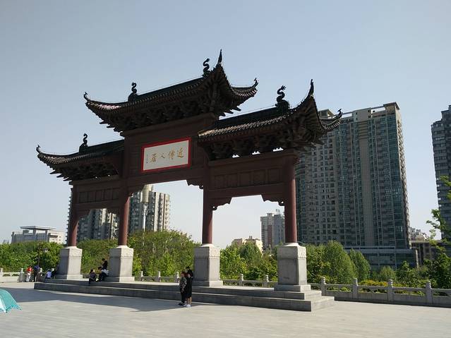 从黄鹤楼的停车场的对面就是这个门,但是,这个门好像只接待团队,个人要到大门才能进去。刚好,有一个团队进门,我们就混进去了。哈哈哈!要不,需要绕到前门进来。