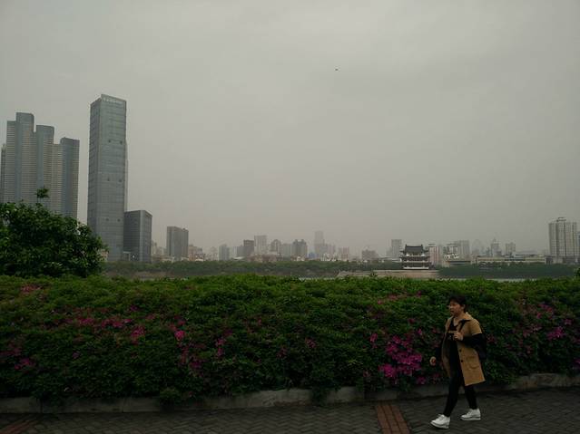 这是西面,人最多的地方!能看见长江和对岸!对岸是汉阳。
