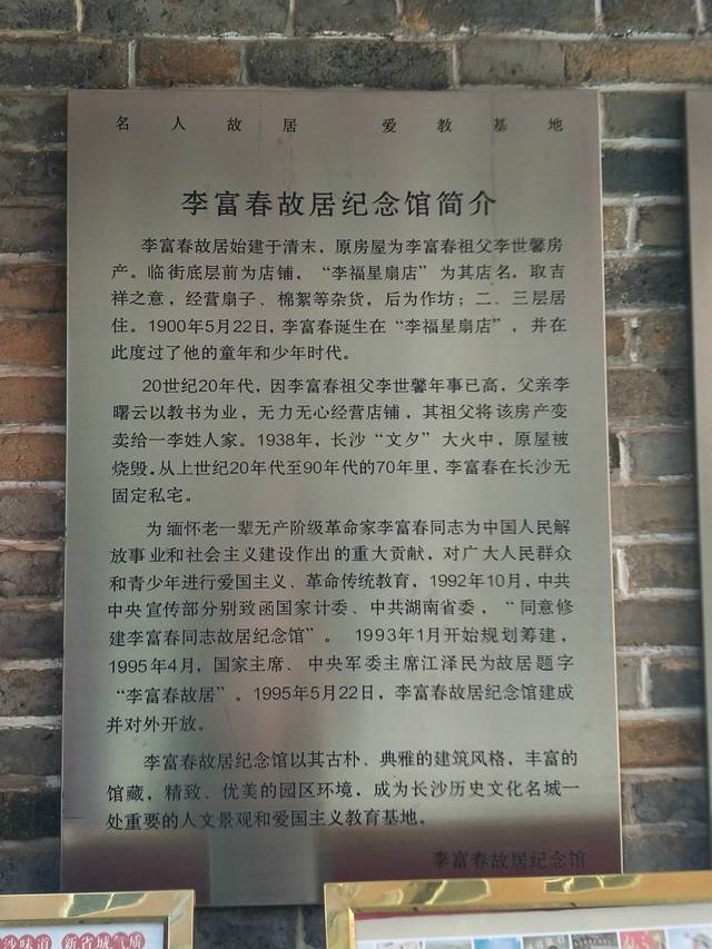李富春纪念馆就在火宫殿的北边一点,马路对面巷子里边。