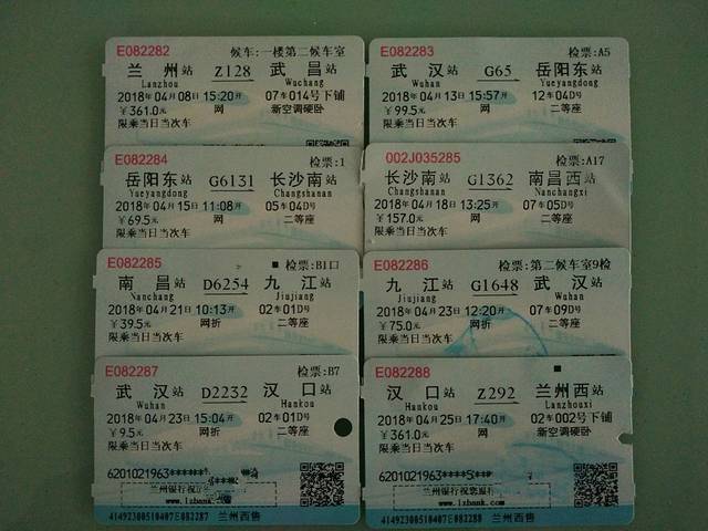 主要是行,也全是火车票,因为我不能坐飞机。一般我出去一趟20天左右,在兰州把各趟车全买好。而且,走以前把车票都取上,这样保险!