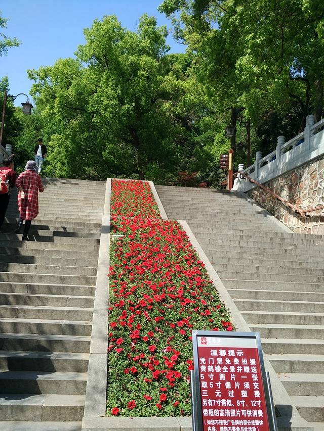 我刚开始查了攻略,应该从黄鹤楼东门进,有旅游观光车,我错了!我忽略了爬楼梯!如果,从南门进去,没有爬楼梯,但是,没有车!而且,挺远的!从黄鹤楼东门走,需要爬楼梯,而且,150个台阶!