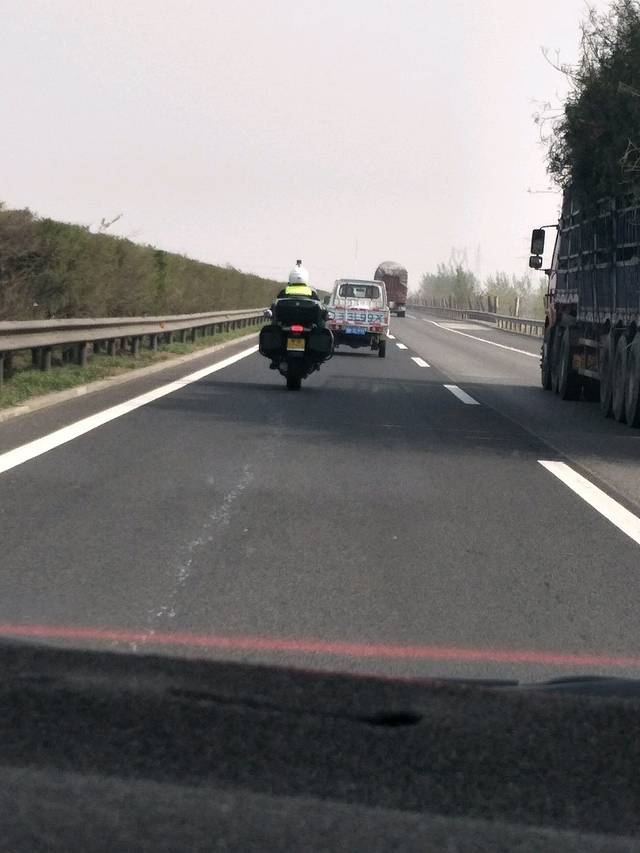 我第一次在高速上遇见大摩托,拍一张,纪念,速度超快,120以上的速度,分分钟钟秒超我们😊