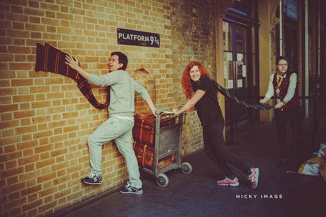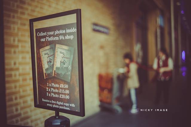 哈利搭乘的霍格沃茨特快就是从Kingscross的9 3/4站台出发的。因此在火车站,除了有礼品店之外,也放置了半个行李车,供大家拍照留念用。