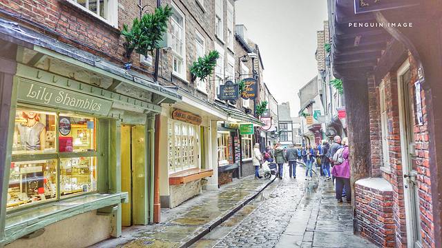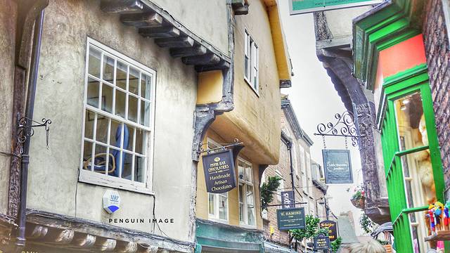 肉铺街(The Shambles)——哈利波特电影中的对角巷——是英国迄今为止保存的最完整最古老的中世纪街道,是约克最著名的商业街,由鹅卵石铺成道路狭窄,因为这条街此前都是肉铺,阳光下肉类容易腐坏所以特意把道路修的狭窄,肉铺街全年基本照不到阳光,夏季十分凉爽。