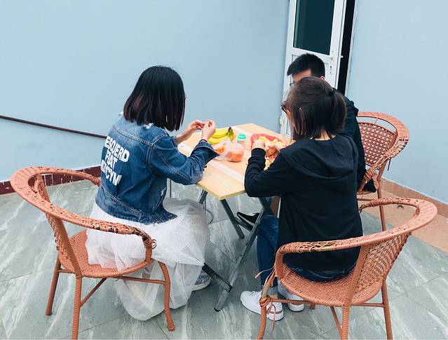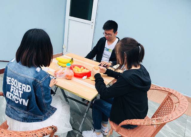 回不了上海,不能登船,就只能扎堆玩玩扑克,贴贴纸条,吃吃水果 冰淇淋啦