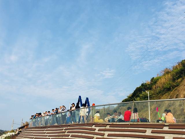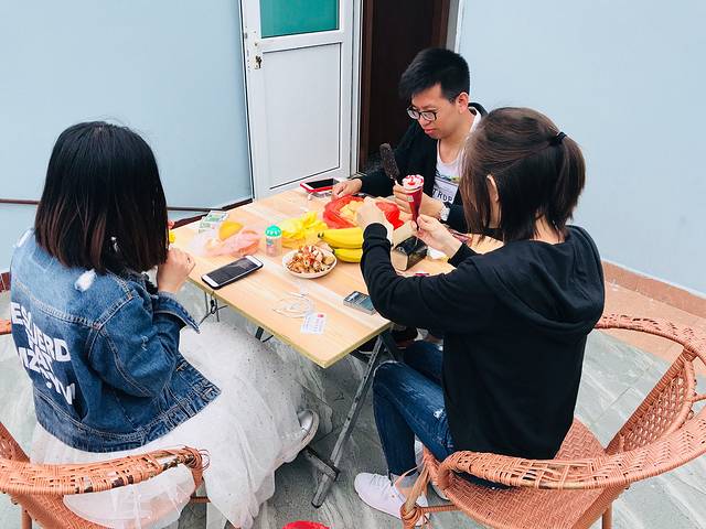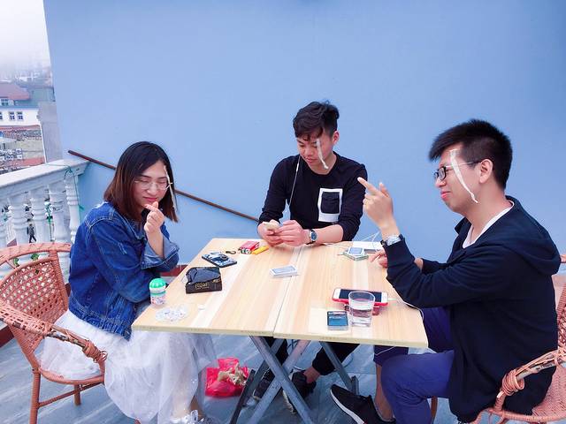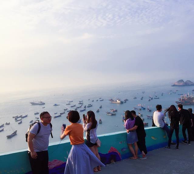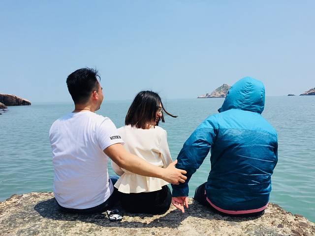 2018-5-1 am7:00到达码头准备返沪,因天气原因全部停航,继续回酒店停留一天次日返沪,8:30完成酒店续住,购买零食水果到酒店阳台四人开吃及扑克牌游戏,13:30午餐,租用电动车,四人一带一游玩山海奇观、三礁江大桥、嵊山岛,观看大王沙滩夜景,晚餐,睡觉。
