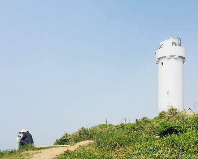 被这座孤立的白色塔吸引,恰好旁边一位大叔蹲坐侧边,正好一拍即合