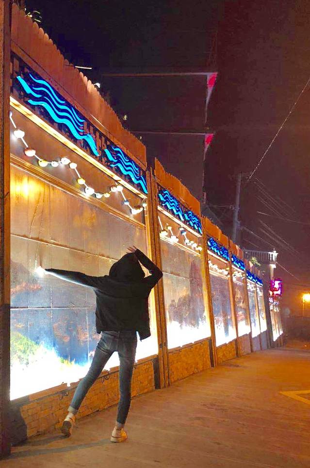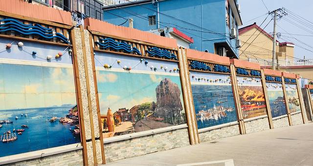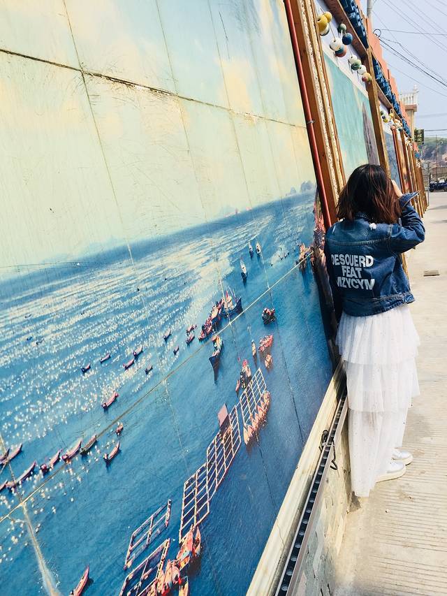 泽泽渔家,楼下的街边围墙,全是绘画🎨作品,很有吸引力,必须拍一拍,瞧,同行的小伙伴,我就给她来张照片,美美哒姑娘