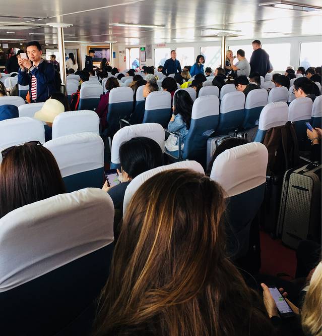 大约8:00左右抵达码头,买好船票,让我惊呆了的是,船票是分很多批次上船,然而我还有另外两个小伙伴一个男生一个女生三人是最后一批上船9:25