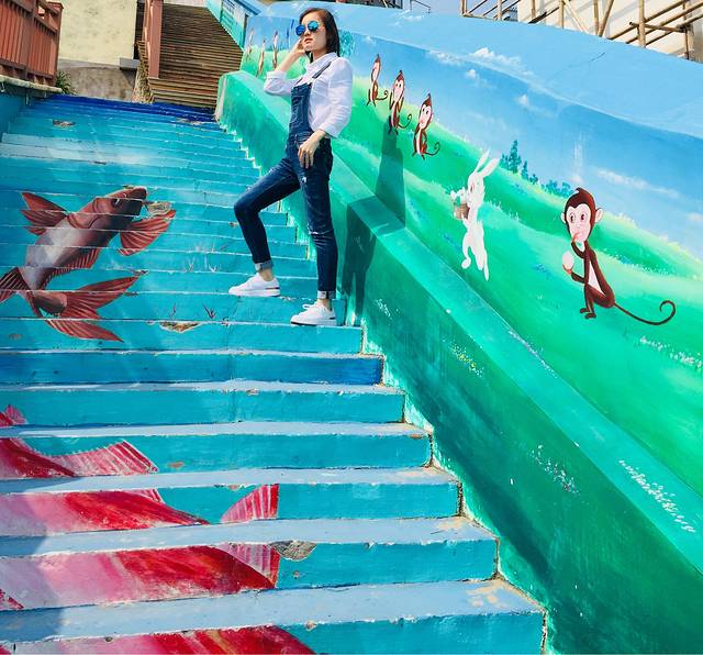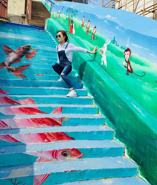 周边的墙壁 楼梯上 都是各种涂鸦作品,真的很梦幻很有意义。这不,我必须与你们这些涂鸦合影留念