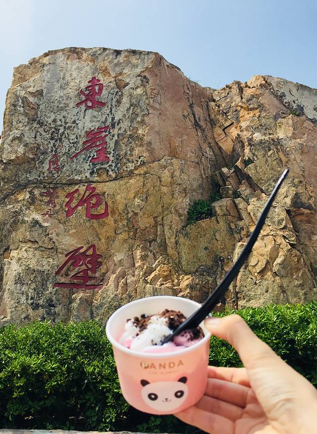东崖绝壁入口处,首先买张门票人/50元,再买一杯草莓巧克力双拼冰淇淋10元,完美。