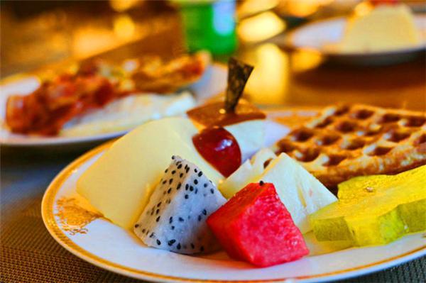 蛋糕还有其他一些早餐都还不错还有水果之类的,稍微吃一点点填饱肚子就行了还有牛奶早餐的搭配,吃完早餐后就立马启程游玩去了。