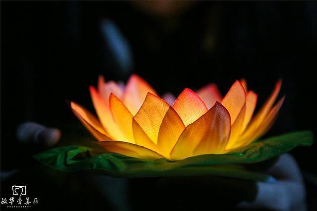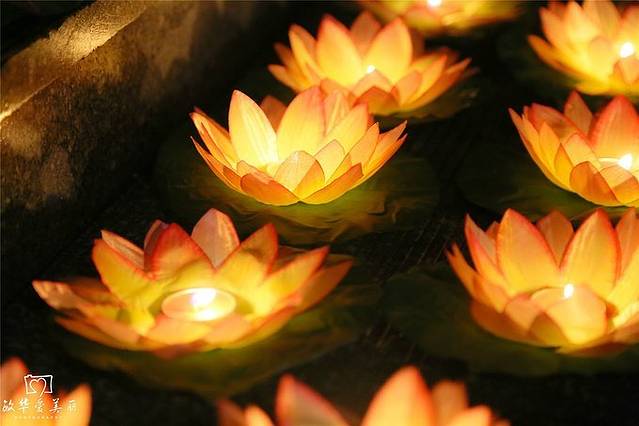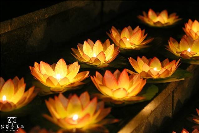 湖水清澈见底,灯光照耀在湖底,石头像璀璨的星星。