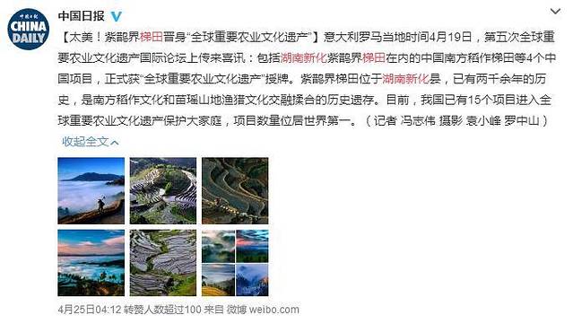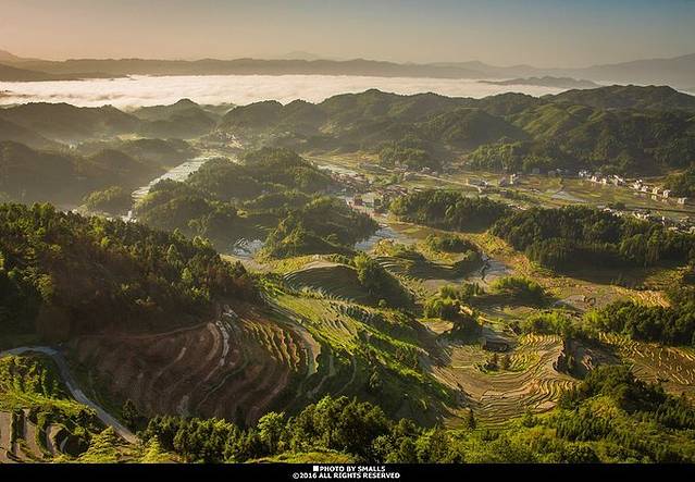 紫鹊界梯田位于湖南娄底新化县西部山区,起于秦汉,形成发展于宋明,至今已有两千余年历史,是苗、瑶、侗、汉等多民族历代先贤共同劳动的结晶。