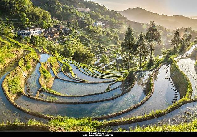 阳光洒向人间,它却把人间的温情当做谢礼投射回天堂,它就是剔透如镜面般的梯田。