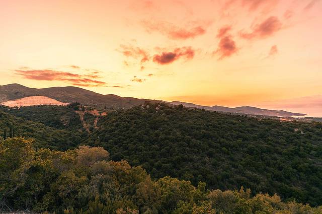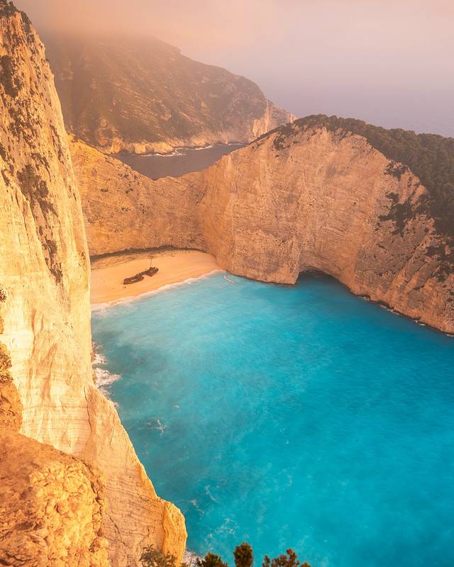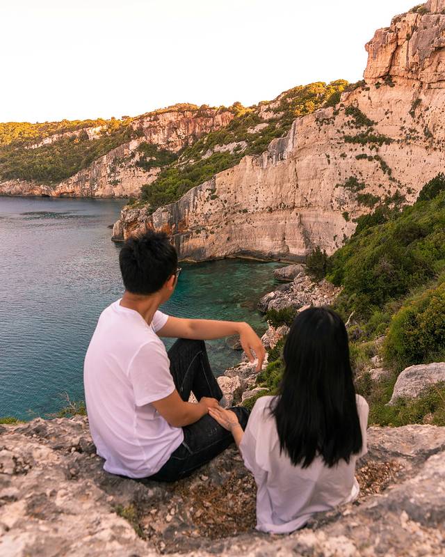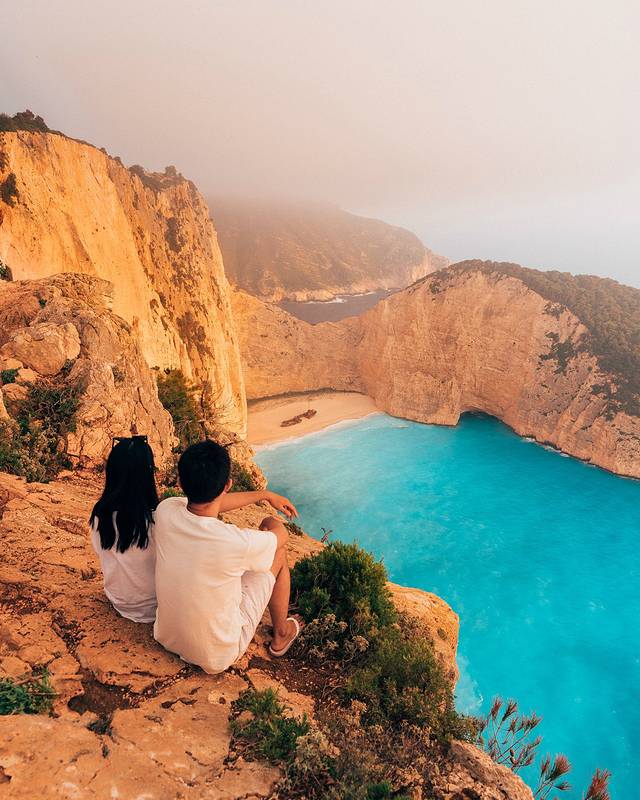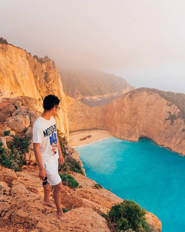 看过韩剧《太阳的后裔》的朋友们都知道,剧中有一个场景是宋仲基开着船带宋慧乔去了一个美丽的沙滩上捡了块石头,这个美丽的沙滩就是位于扎金索斯的沉船湾。沉船湾有两种看法,一种是坐船登上沙滩参观沉船,另外一种方法就是爬山之后在山上俯瞰整个海湾。我们考虑了很久到在沙滩上会很晒并且人太多,我们选择了登上山顶俯瞰沉船湾并看日落,所以这个行程被安排在了下午6点(当天的日落时间是晚上8点半)