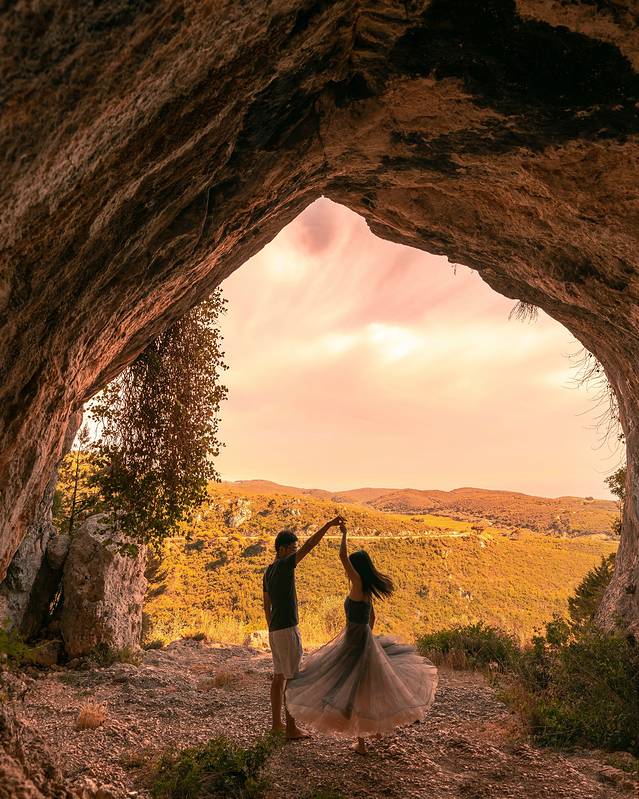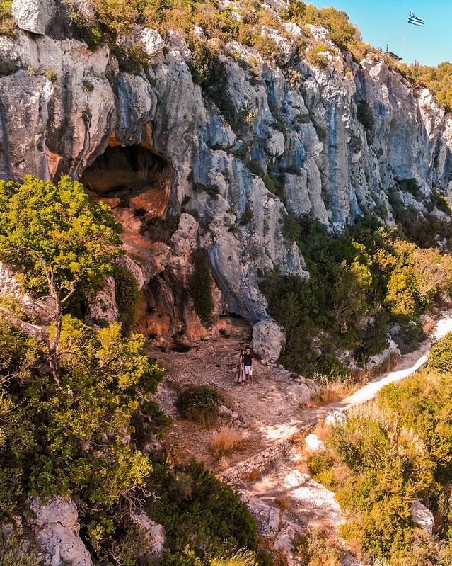 在旅行的最后一天,我们决定去前台所说的secret place碰碰运气,在杰西收拾好后,我们就开车去啦,途中遇到了一群把头埋在树荫底下遮阳的羊,没想到羊居然也会怕晒?!很遗憾的是,即使我们走了好几趟这条路却依然没有找到,但在机缘巧合之下,我们找到了一个叫Damianos的洞穴。
