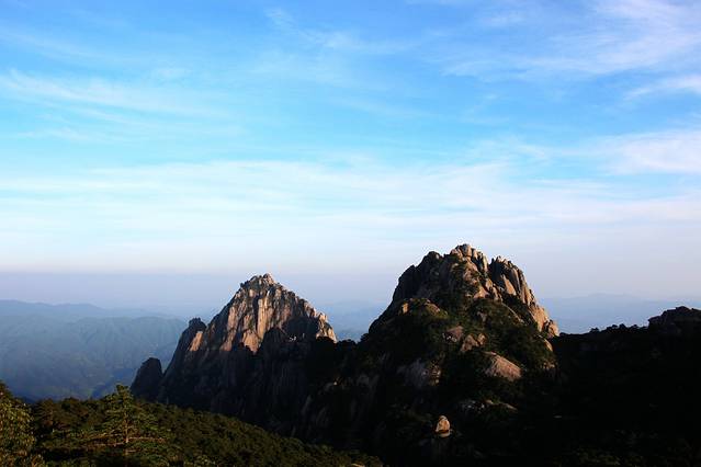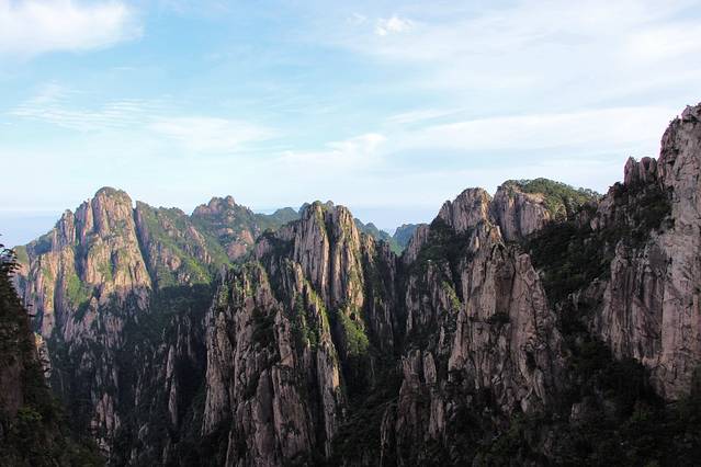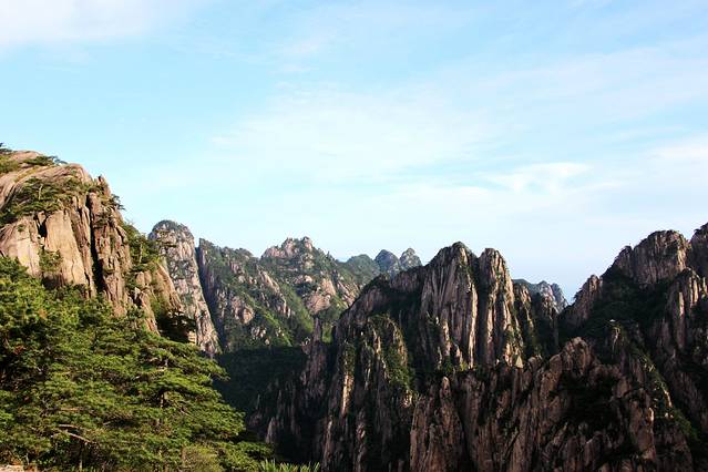 天上的云也只有寥寥的两三片,更不要说山间的云海了。想拍到石猴观海的精美照片只有等到下次来黄山时撞运气了。不过能从这么高的山上清晰的看到山下的沧海桑田,也从一个侧面说明这里的环保做的不错。赞!