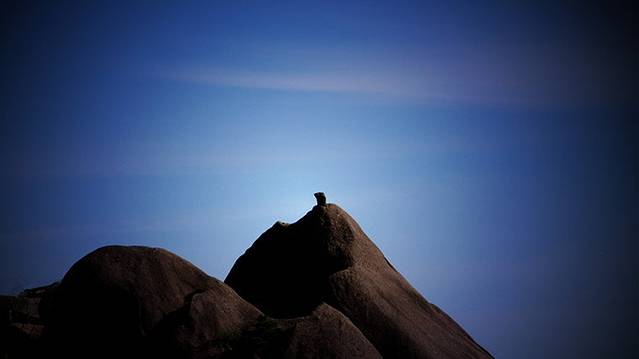 我加工过的图片,前一天在黄山前山对着某一个山巅拍的。是不是更有石猴观海的感觉。