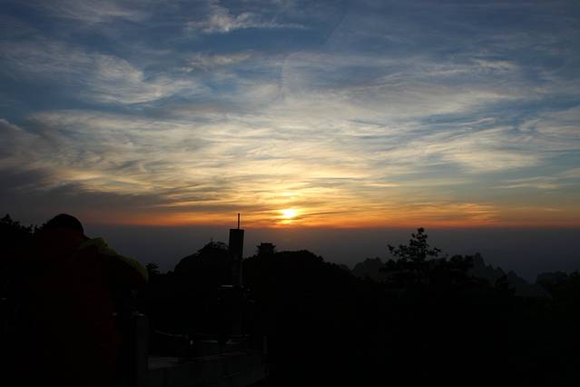 清凉台是黄山看日出的第一选择。据说来这看日出,凌晨2点就要来占地方,晚了根本没有位置。听昨晚白云宾馆同屋的湖北摄影家协会一位会员说的。有人问:你为什么在鳌鱼峰拍日出而不选择清凉台?他回:我的境界还不够!同屋哄笑,细思挺奈人玩味的。