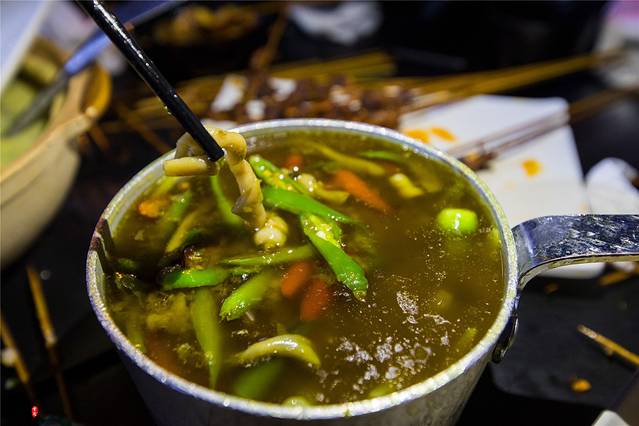 这是一家典型的川式串串店。很多外地人问,既然你们有了火锅,为什么还会出现串串呢?这两者有太多的共同点,完全可以一笔带过啊。那么我告诉你,串串比起火锅的优势在于,量小,可选择的面就大。所以在串串店,你经常可以看到1人或者2人的组合,然而在火锅店,更多的是一大桌的形式。