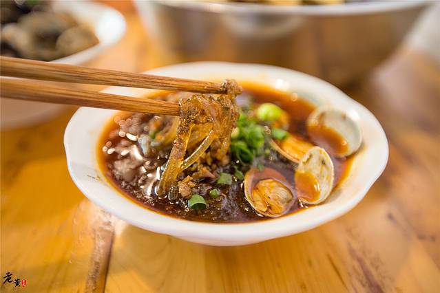 首先给大家推荐一道我中意的菜品--花甲老醋粉。其实从这道菜的味道本质来说,和我们熟悉的酸辣粉没什么两样。但卖相来说就有区别了。我们经常吃到的酸辣粉多数是杂酱来拌,但今天吃到的却是由花甲来做辅料。从这点来看也是别出心裁的,让川味和海鲜又完美结合了一次!