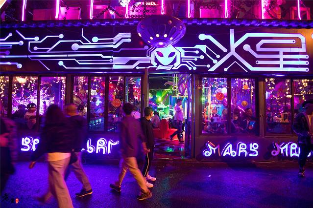 在九眼桥附近,就是著名的酒吧一条街。这里大多是青年人聚集的地方。大家抛去白天的伪装,好好的在晚上撕下面具,找寻最真实的自我。他们也许三三两两,也许三五成群,甚至独自一人。不管怎样,这个时候是放纵灵魂的时刻。是什么时候,大家开始习惯了夜生活的放纵,我想答案就在每个人压抑的内心里。