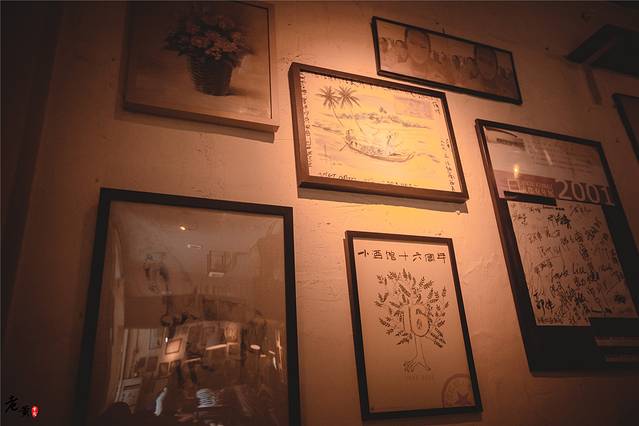我找了一个最靠墙的位置坐下来。里面的灯光较暗,极力的配合着场子里的气氛!桌上放着一个灯具,上面赫然的写着小酒馆的生日,1997.1.18,今年是它21个年月。而在周边的墙上,贴着很多海报,彰显着酒馆的品味。还有许多小酒馆历年来收到的从各界人士手里收集的关于它成长足迹的物品。从现在看来都是既有纪念价值的!
