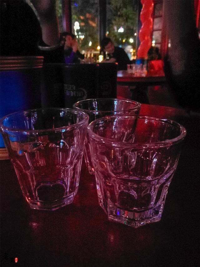 我们进入酒吧,体验成都人的夜生活。当我们坐下来时,大家不由自主的笑起来。也对,3个不喝酒的人儿学别人什么进酒吧啊。唉,为了体验,为了观察,为了零距离接触。我们不好意思的点了些果汁,但酒保告诉我们,3人最低消费300。好吧,那就还是来瓶酒吧,我象征性的点了最便宜的红酒。怎么的也要装逼一次嘛。