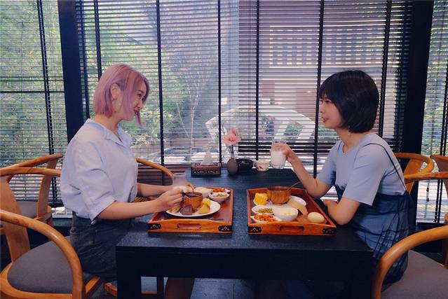吃完了三小后回到安境栖麓,此时肚子很撑,适合在楼下坐着喝杯茶,于是小丑和八千就开启了名媛の饮茶时间。