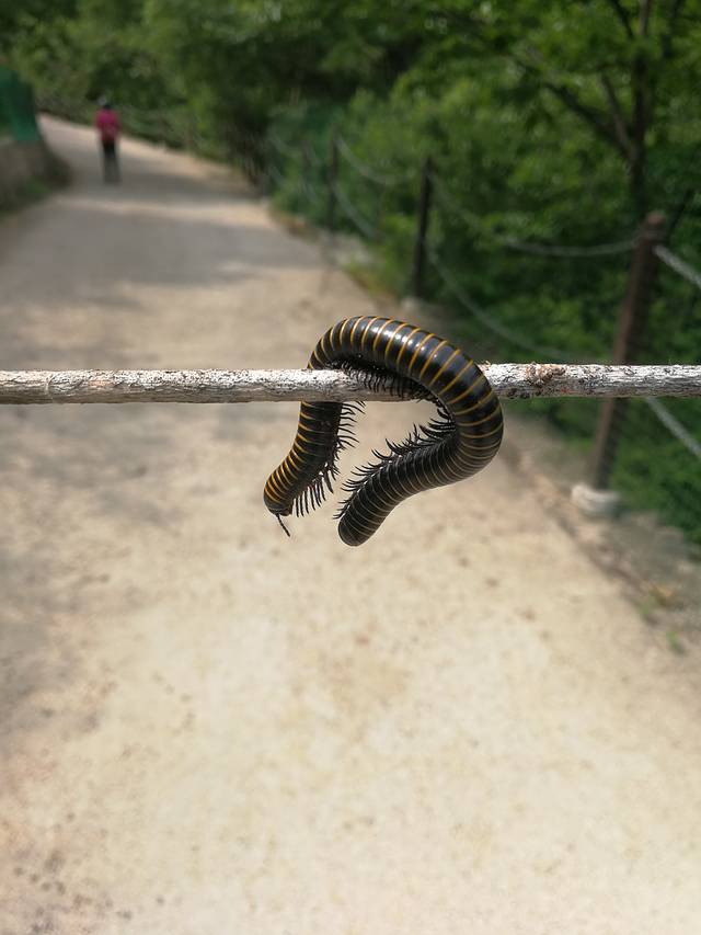 马陆(millipede)也叫千足虫、千脚虫、秤杆虫。马陆属于节肢动物门,多足亚门,倍足纲,体节组成。长约20~35毫米,暗褐色,背面两侧和步肢赤黄色。千足虫行走时左右两侧足同时行动,前后足依次前进,密接成波浪式运动,很有节奏。不过,它虽然足很多,但行动却很迟缓。千足虫平时喜欢成群的活动,一般生活在阴暗潮湿的地方,如枯枝落叶堆中或瓦砾石块下。专吃落叶、腐殖质;也有少数种类吃植物的幼芽嫩根,是农业上的害虫。