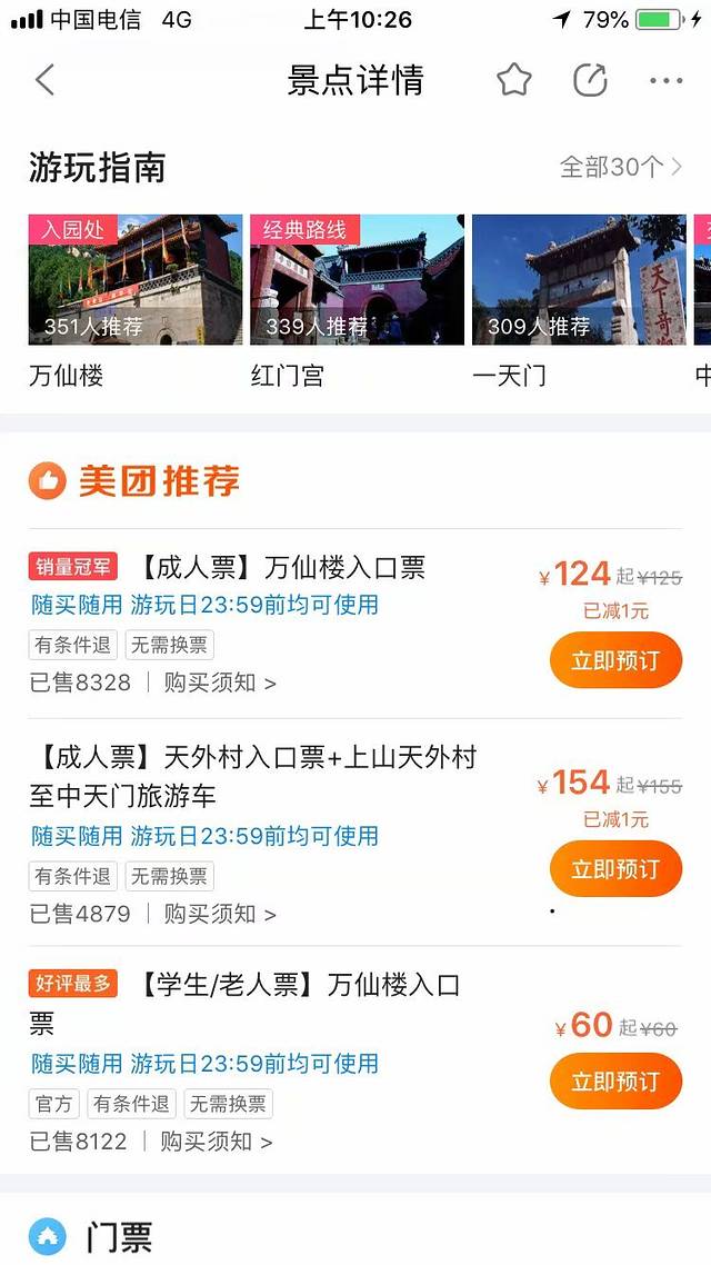 (买62路车票时,售票员极力的推荐在她这里购进山票及到达中天门的游览车票,说是天外村购票人太多,容易排队,一急之下,忘了自己可以在美团订购的事了,就购买了,进山票127元,中天门游览车票30元。但因是周末非节假日,到了天外村安检后售票窗口购票却是125元口+30元,所以说高铁站的票价比天外村的贵2天,如果在美团可能154元)。