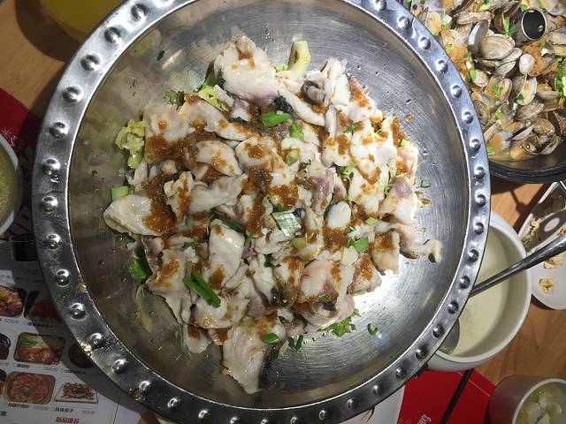酒店入住,稍做休息后,我们就查到“醉得意”、“赵记大煎饼”狼诱惑”是泰安的特色,就左转到步行街,向前行至一条路尽头,到达了一家“醉得意“,没想到,我们到达时已经八点半了,正好赶上了这家酒店的晚“8:00-9:30”8.5折优惠时段,点了一个铁锅片片鱼及蛤蜊、泰山三美、土豆丝、铁锅鸡,加上每人水果饮料米饭3元/人自动,花了115元,三个大人,两个小朋友就足够吃的。还打了包。 问题是菜味道也好吃。特别是米饭香的不得了。性价比超强。