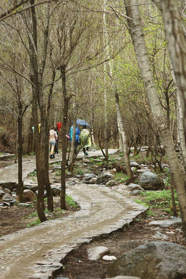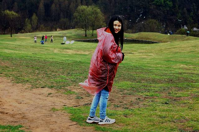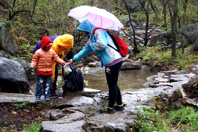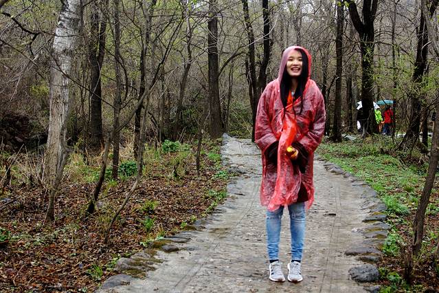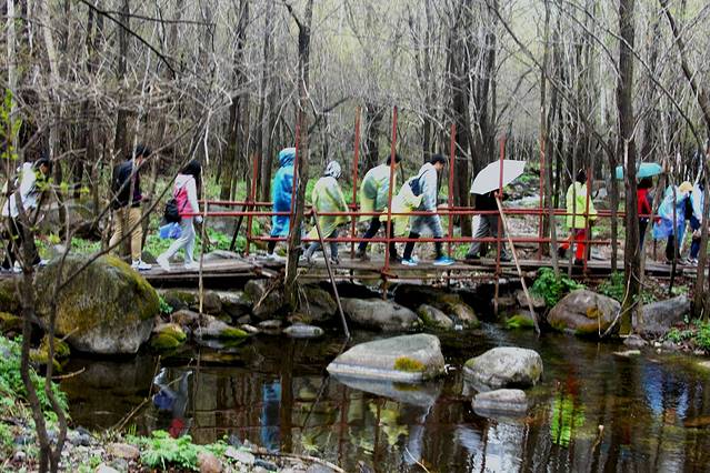 本来以为,人不会很多。结果一到才发现,和我有同样心理的人不在少数,看着大家一路打着雨伞,披着雨衣,冻得哆哆嗦嗦,脸上却都乐乐呵呵的,感觉一下就找对组织了。心情像天气一样:清凉,敞亮。路上一位阿姨说:出来玩儿,玩得就是心态。不能更赞同。