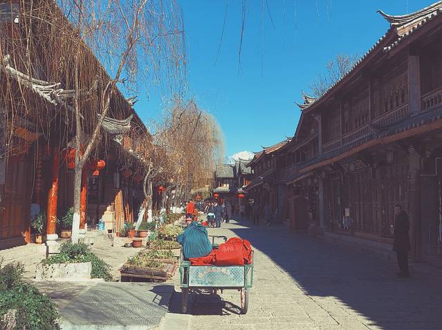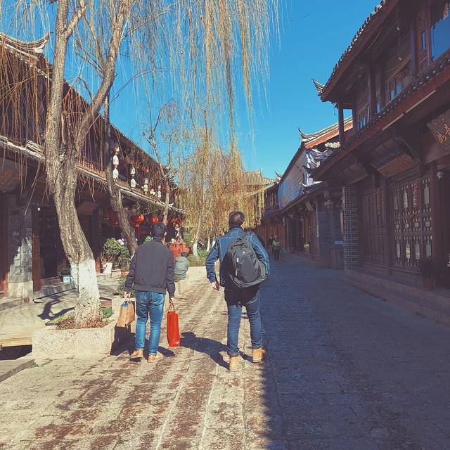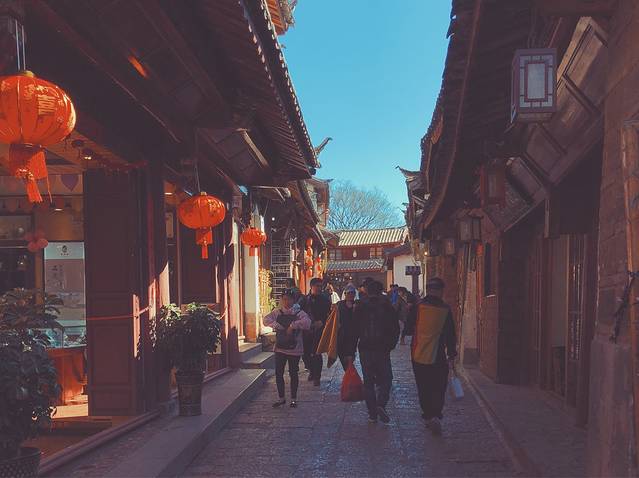 白天的古城,相对来说比较安静,四方街中午就有表演,坐在广场上晒着不要钱的太阳,呼吸新鲜甘甜的空气,体验一下丽江的慢生活。