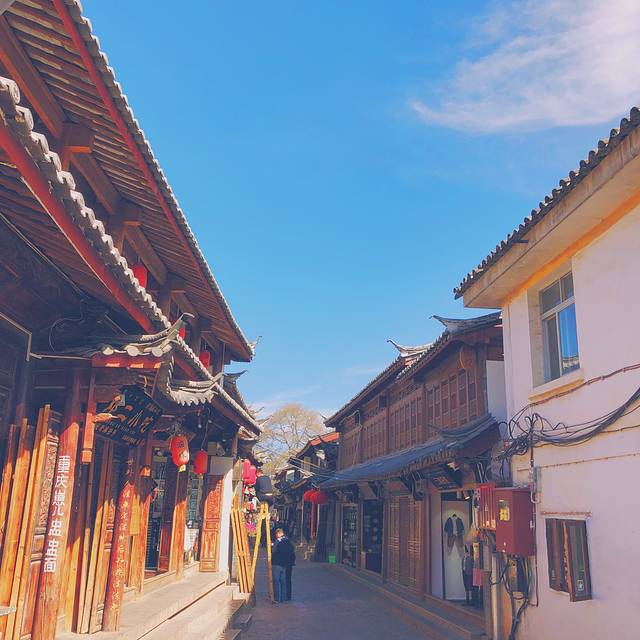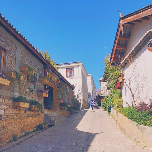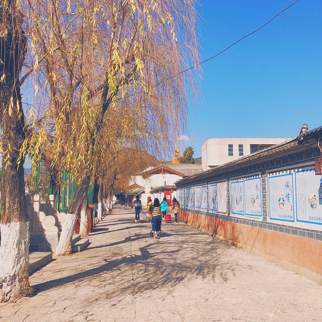 喜洲古镇主要拍照的有两个,一个是黄墙,一个是古镇里一个圆顶的角楼,沿着角楼右边的那条路往里走就可以看到经常被拍的大理黄墙,这两个拍照点都很小清新,黄墙那边的绿植冬天也是绿色的,绿色黄色相互映衬,很美腻。