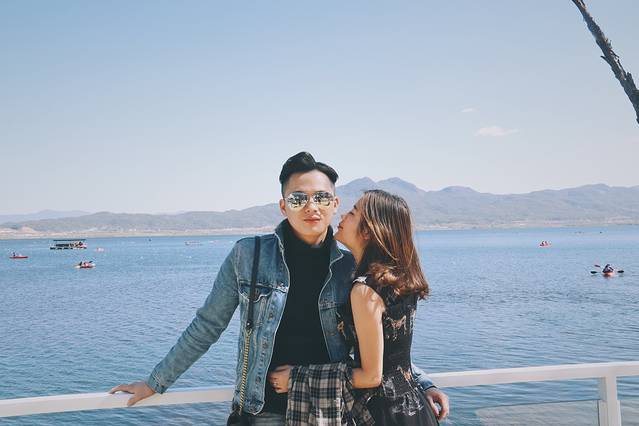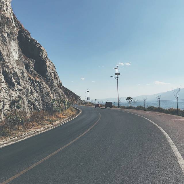 挖色镇到双廊一带的环海路是最美的,沿途有很多小地方可以拍照,我们找了一段车不是很多的环海路,拍“公路大片”哈哈哈😂