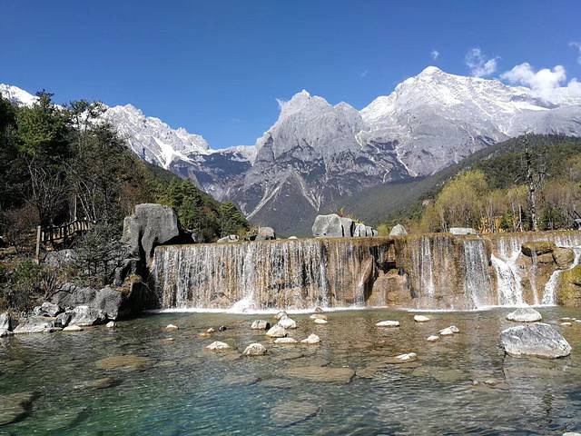 雪山下的蓝月谷炒鸡漂亮,水是蓝色的,有“小九寨沟之称”,绕着蓝月谷边玩边拍照,在丽江这蓝天白云雪山阳光美景之中,仿佛时间都停止了!
