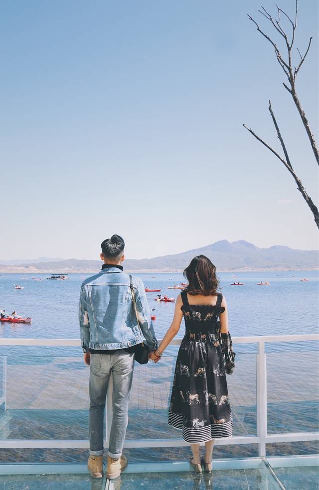 说到拉市海,其实很多商家就是“骑马、划船、土鸡火锅……”😰但是我和男朋友去之前就决定不!骑!马!😬😬就想去拍照!