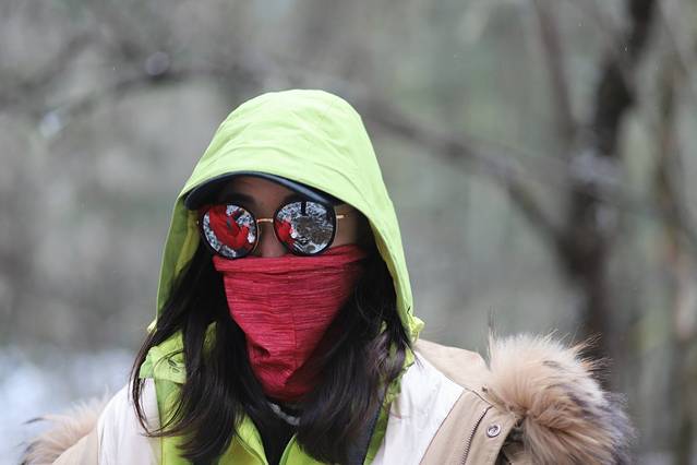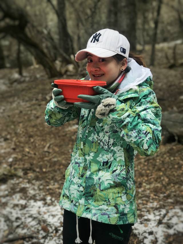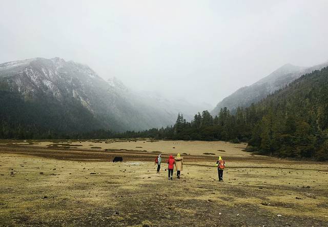 刮过脸上的是温度与皮肤表面决然不同的凌厉冷风,走入树林,耳旁是因树叶的颤抖显得比在旷野上更加清晰的“呼——呼——”风声,眼前缓缓走过几头在树林里穿梭的背上驮着刚下的雪的大黑牛。这个时候,拿出充电小音箱,在大自然和音乐声中一边冻得瑟瑟发抖沉默不语,一边期待着渐渐升温的自热火锅,感叹每次旅程都自虐又享受。